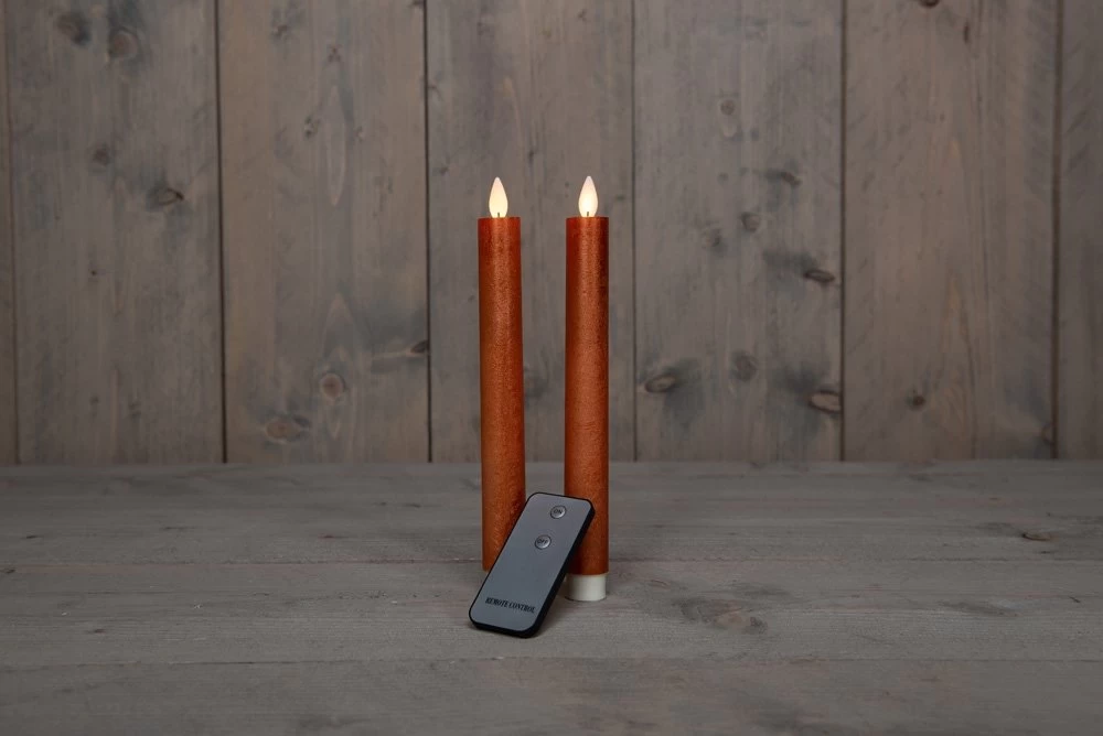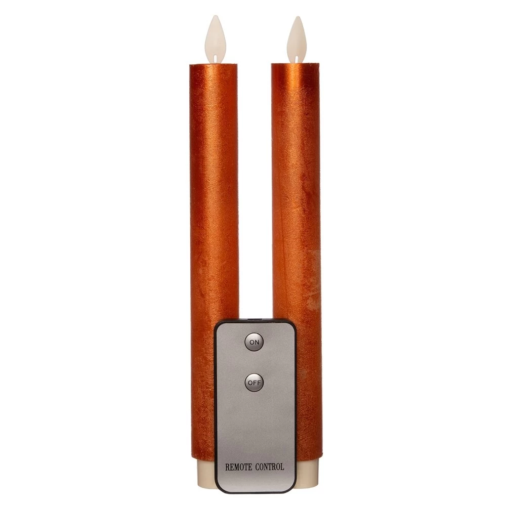 Anna’s Collection 2st. LED Rustiek wax Diner kaars Koper H23 cm
