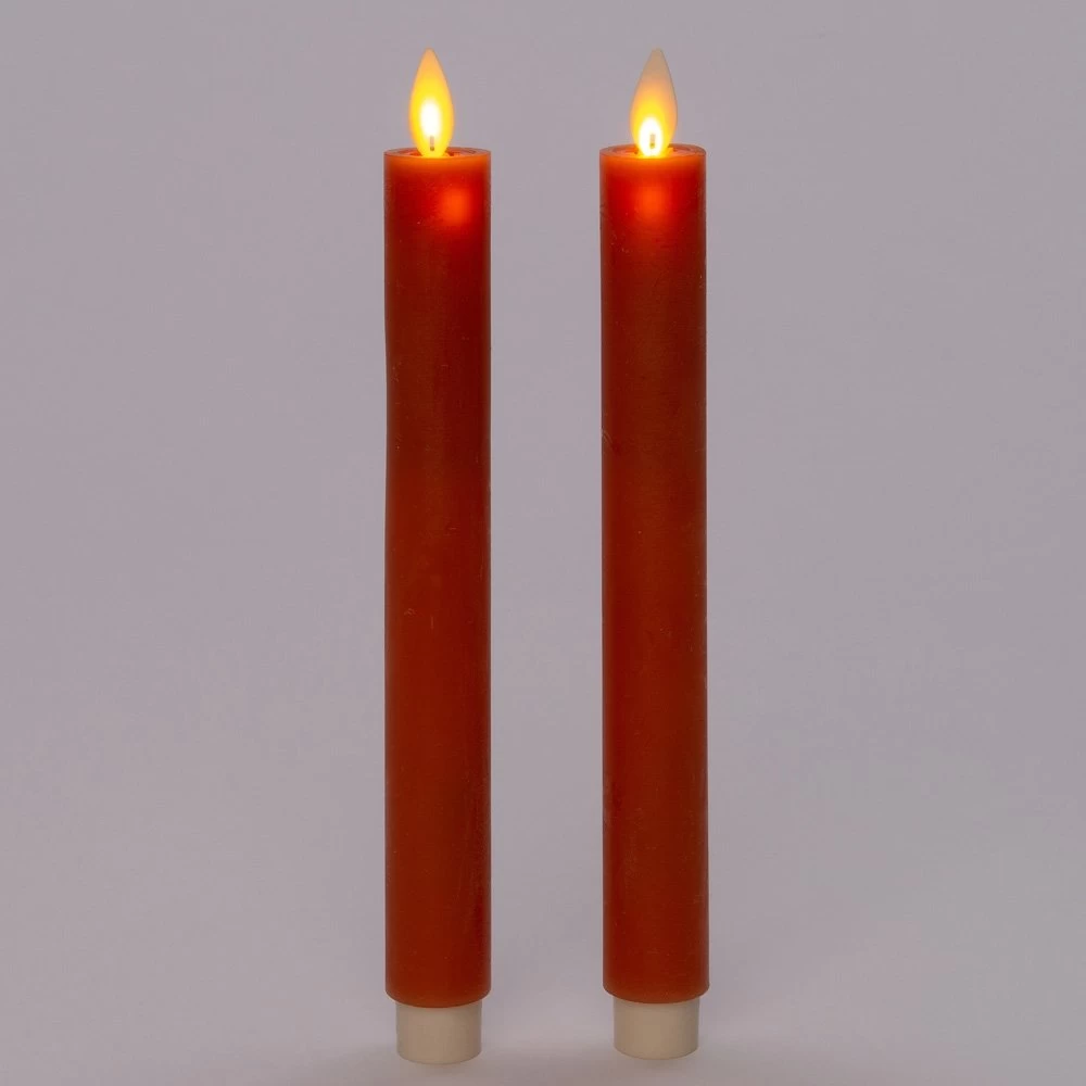 Anna’s Collection 2st. LED Rustiek wax Diner kaars Oranje H23 cm
