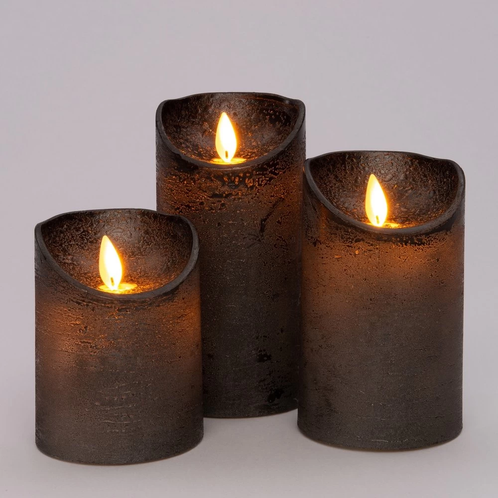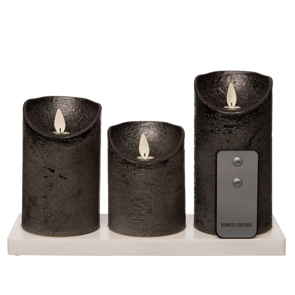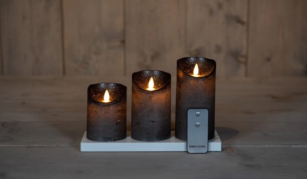 Anna’s Collection 3st. LED Rustiek wax stompkaars Antraciet – Ø 7,5 x H 10/12,5/15 cm