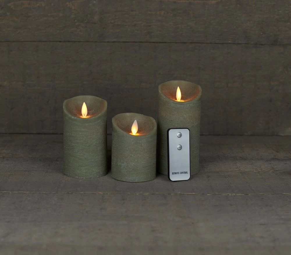 Anna’s Collection 3st. LED Rustiek wax stompkaars Taupe – Ø 7,5 x H 10/12,5/15 cm