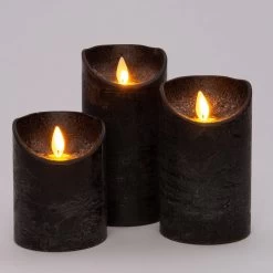 Anna’s Collection 3st. LED Rustiek wax stompkaars Zwart – Ø 7,5 x H 10/12,5/15 cm
