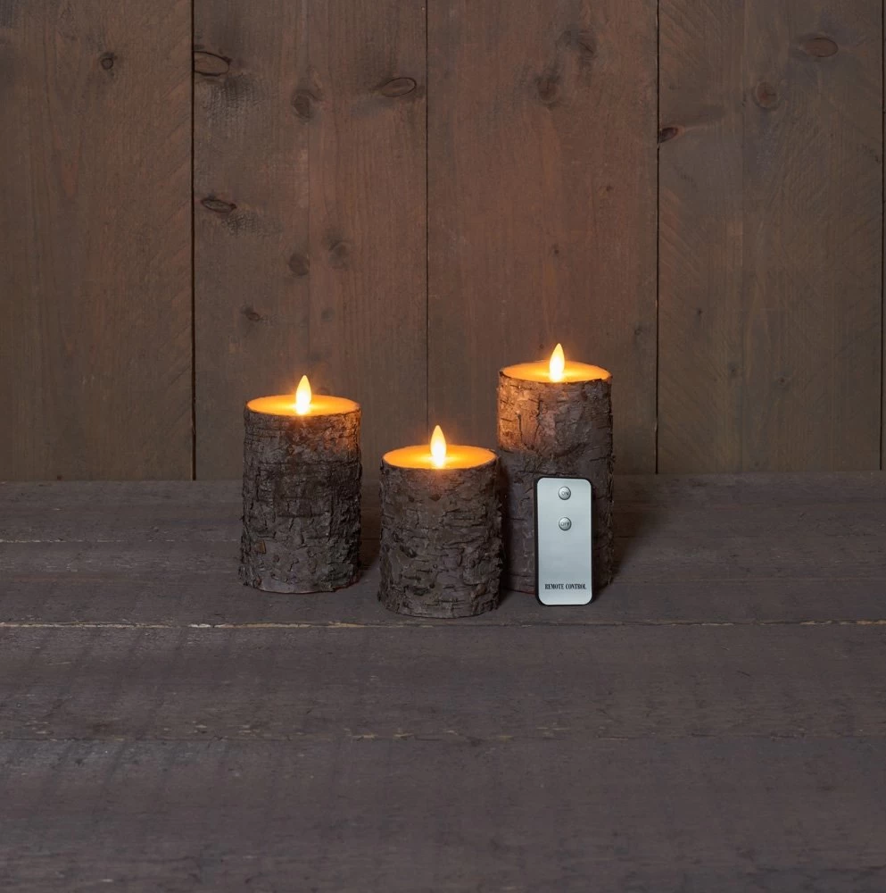 Berken LED-kaarsenset met bewegende vlam 7,5 x 10/12,5/15 cm met afstandbediening