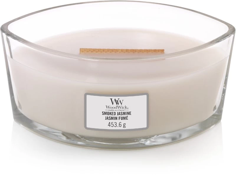 De geurkaars WoodWick Smoked Jasmine Ellipse Candle