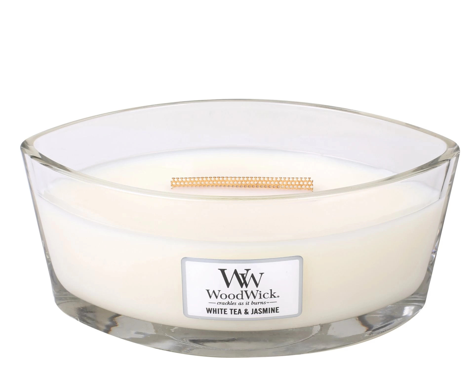 De geurkaars WoodWick White Tea & Jasmine Ellipse Candle